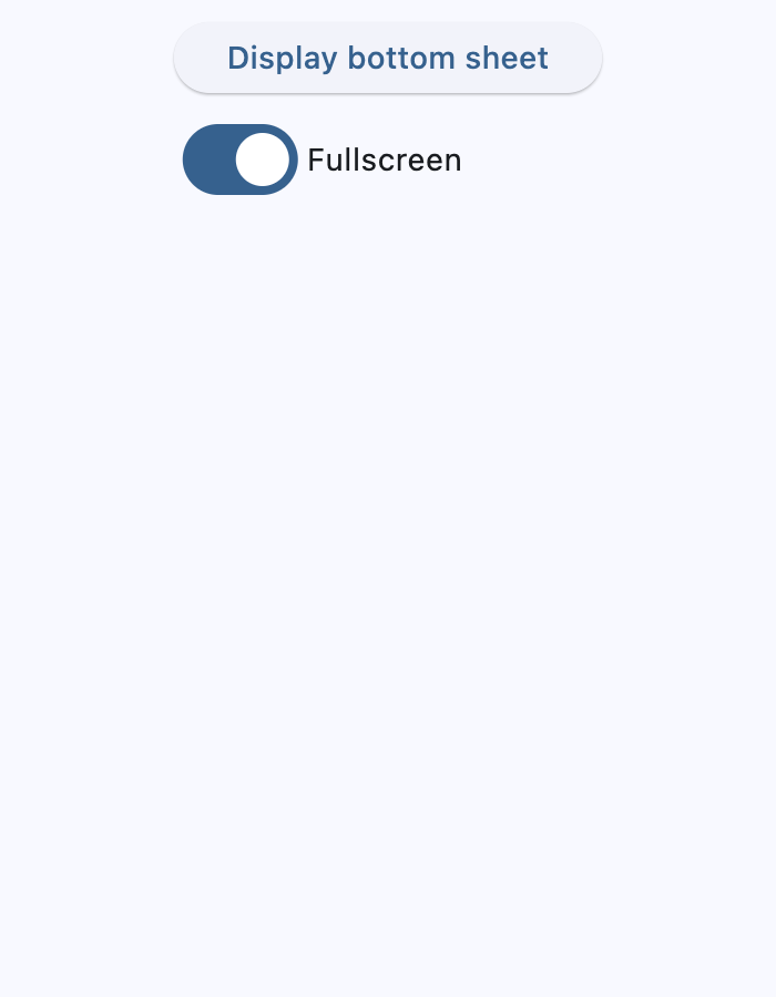 animation_style- The animation style of this bottom sheet.barrier_color- The color of the scrim that obscures content behind this bottom sheet.bgcolor- The background color of this bottom sheet.clip_behavior- Defines how the content of this bottom sheet should be clipped.content- The content of this bottom sheet.dismissible- Specifies whether this bottom sheet will be dismissed when user taps on the scrim.draggable- Specifies whether this bottom sheet can be dragged up and down and dismissed by swiping downwards.elevation- Defines the size of the shadow below this bottom sheet.fullscreen- Expands the sheet to fill the window/page height.maintain_bottom_view_insets_padding- Adds a padding at the bottom to avoid obstructing this bottom sheet's content with on-screen keyboard or other system elements.scrollable- Removes the half-height cap so the sheet can grow with its content.shape- Defines the shape of this bottom sheet.show_drag_handle- Whether to display drag handle at the top of sheet or not.size_constraints- The size constraints to apply to this bottom sheet.use_safe_area- Specifies whether the sheet will avoid system intrusions on the top, left, and right.